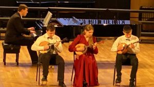 🎶 Поздравления подготовила и делегация глиэровцев из Калининграда. Концерт украсил ансамбль домристов «Экспромт» в составе: Лапотько Артем, Железняк Артемий, Гаврилова Варвара (руководитель — заслуженный работник культуры РФ Надопта Н.Г., концертмейстер — Иванченко Г.О.). Свой музыкальный подарок преподнесла и директор Крячкова И.С., исполнив романс Р.М. Глиэра.